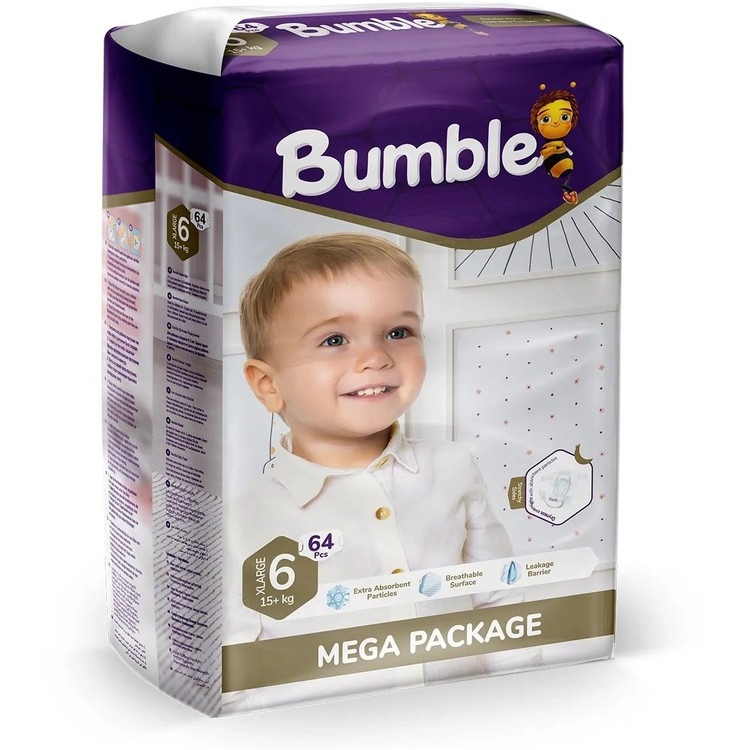 پوشک چسبی کودک بامبل bumble سایز 6 بسته 64 عددی